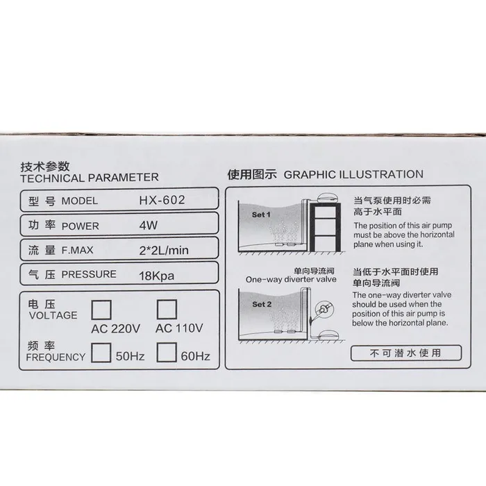 Компрессор для аквариума Sea Star HX-602, бесшумный, с регулировкой мощности,2 х 2 л/мин,4Вт 993358 — Характеристики