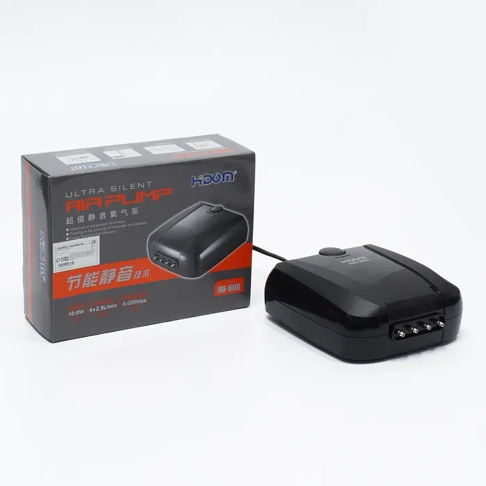 Компрессор Hidom HD-608 - это внешний компрессор для аквариумов, который имеет компактный и эргономичный дизайн. Он работает бесшумно, что делает его идеальным выбором для использования в домашних условиях.