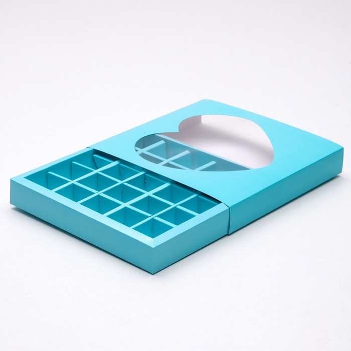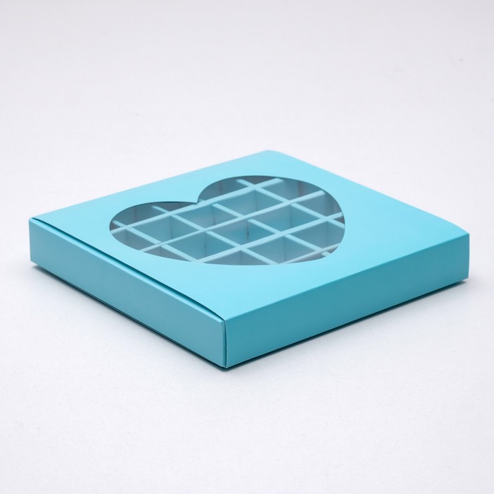 Кондитерская коробка для конфет 25 шт "Сердце", голубая, 22 х 22 х 3,5 см — Характеристики