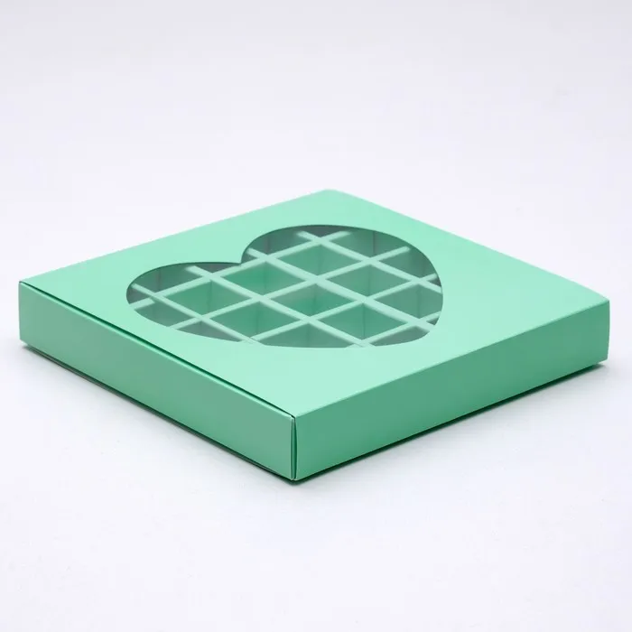 Кондитерская коробка для конфет 25 шт. «Сердце», мятная, 22×22×3.5 см — Характеристики