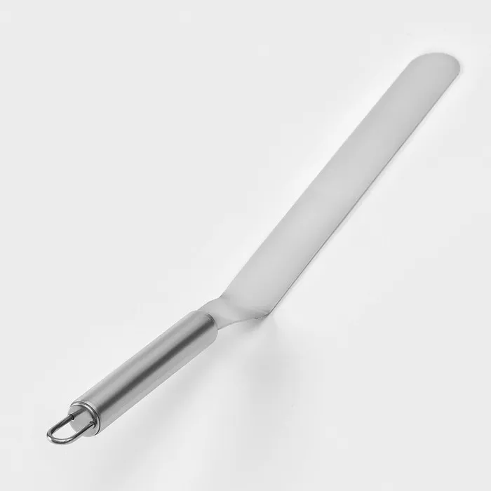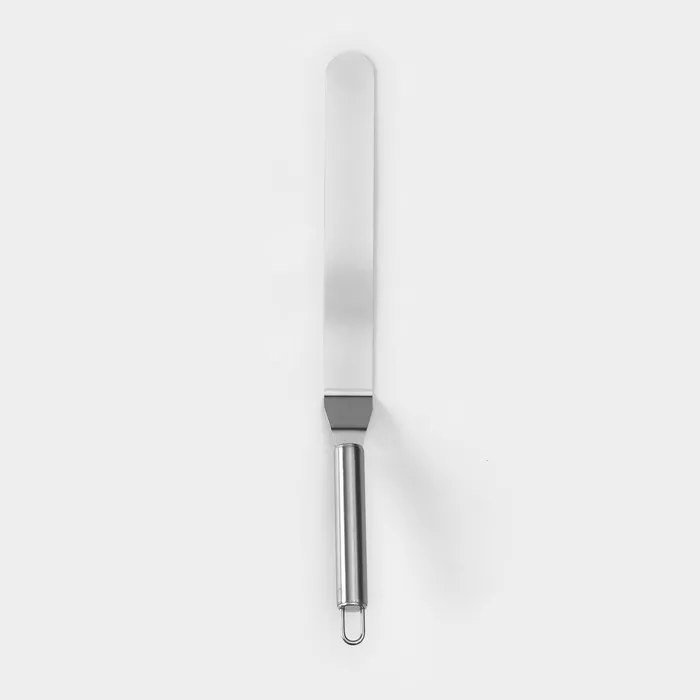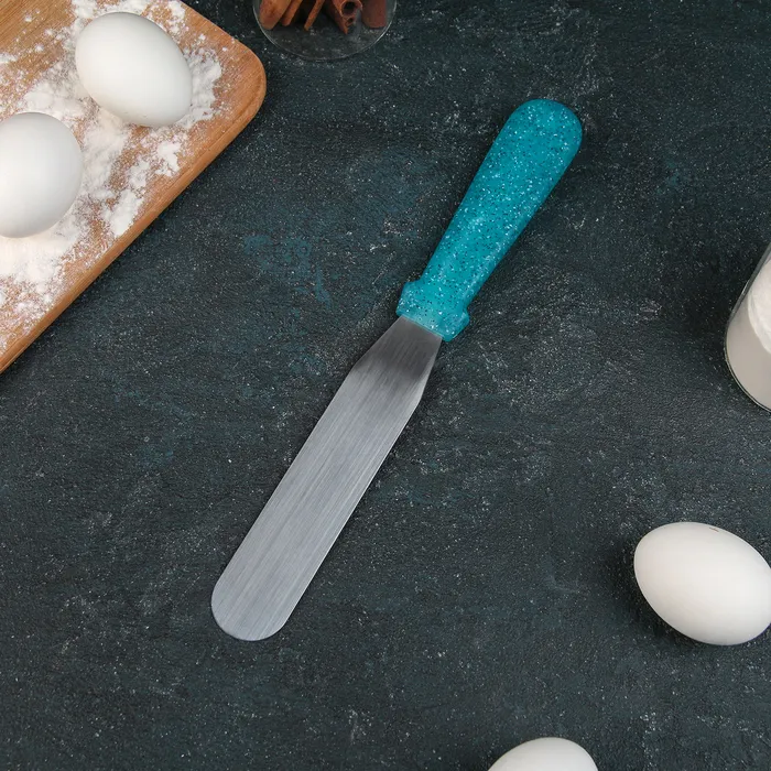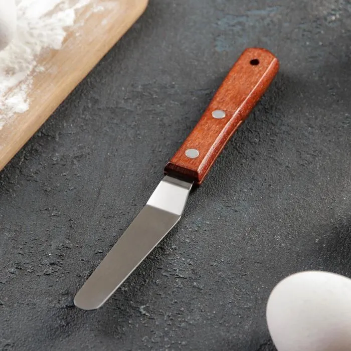 Лопатка-палетка — это универсальный инструмент, предназначенный для выравнивания поверхности торта, распределения начинки между слоями, нанесения глазури и отделения декора из шоколада или мастики.