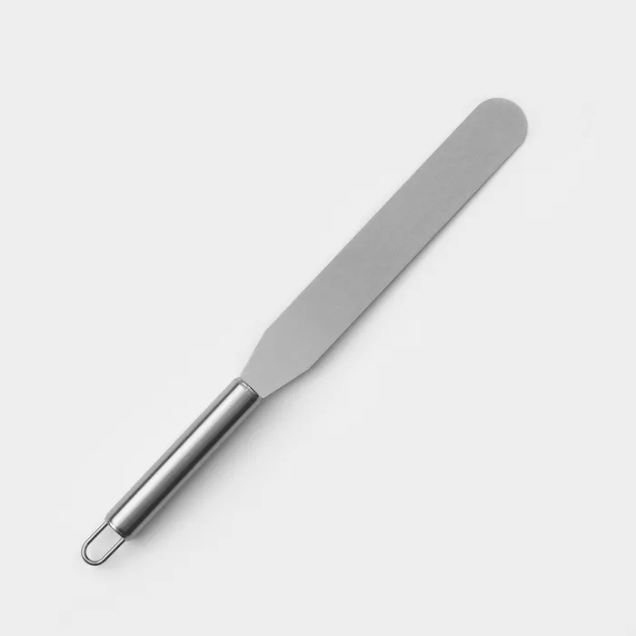 Лопатка-палетка — это универсальный инструмент, предназначенный для выравнивания поверхности торта, распределения начинки между слоями, нанесения глазури и отделения декора из шоколада или мастики.