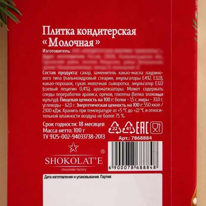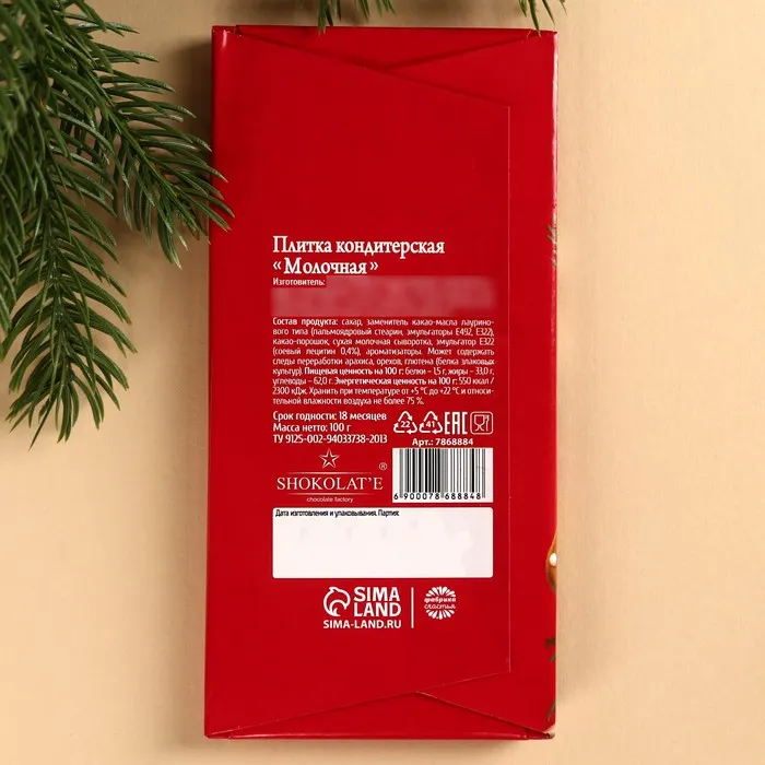 Кондитерская плитка «Новый год: Пусть год будет сладким», 100 г. — Характеристики