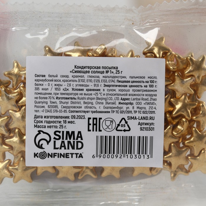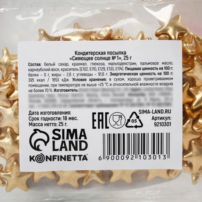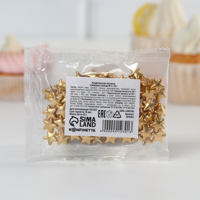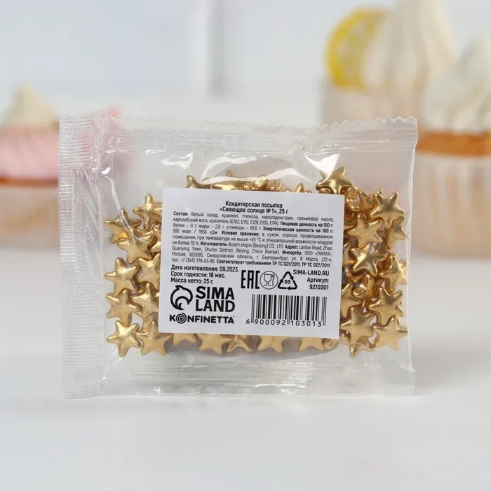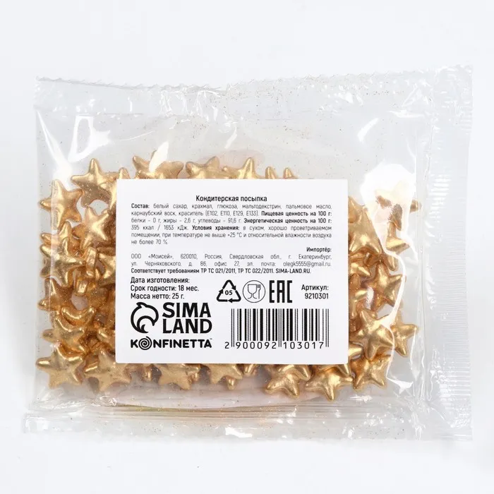 Кондитерская посыпка для торта «Звёздочки», золотая, 25 г. — Характеристики