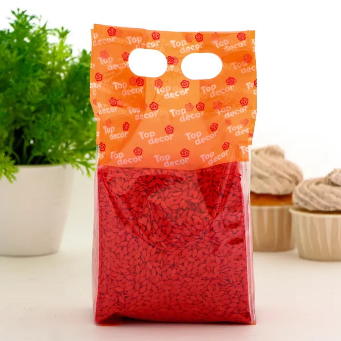 Чудесный красный цвет посыпки сразу привлечет внимание и создаст атмосферу праздника, делая её отличным решением для оформления тортов, капкейков, печений, сладких десертов и даже мороженого. Она прекрасно подходит к различным темам мероприятий, включая дни рождения, свидания, свадьбы и романтические вечера.