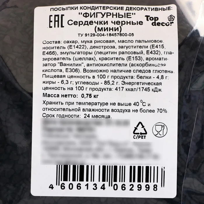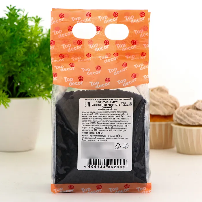 Чёрный цвет посыпки придаст вашим кондитерским изделиям необычный и оригинальный вид, делая их подходящими как для свадебных мероприятий, так и для дней рождений, романтических ужинов или любых других торжеств. Она отлично гармонирует с любыми оттенками и вкусами, добавляя стильный акцент к вашим кулинарным шедеврам.