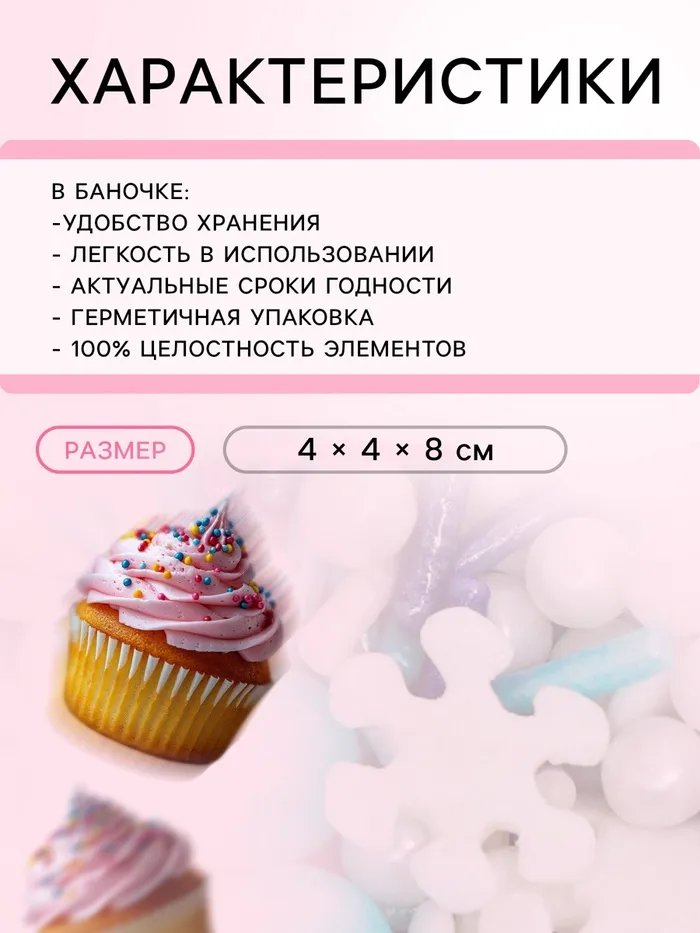 Посыпки могут использоваться для украшения всевозможных тортов, пирожных, капкейков, куличей и других сладких шедевров. Также их можно использовать, как съедобное конфетти для украшения праздничного стола. С таким декором Вы точно сможете дать полную свободу воображению!