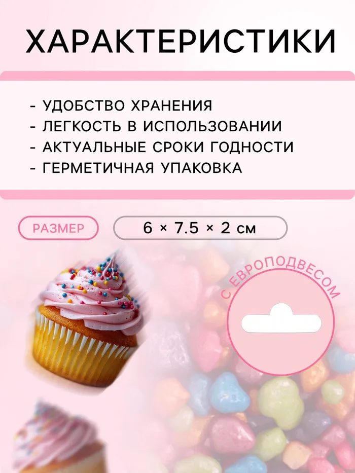 Декоративные цветные звездочки, шары или сердечки - это идеальное съедобное украшение для выпечки, пирожных, десертов и леденцов. Также эта разноцветная посыпка прекрасно подходит для декорирования пасхальных куличей.