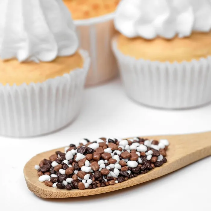 Декоративные цветные звездочки, шары или сердечки - это идеальное съедобное украшение для выпечки, пирожных, десертов и леденцов. Также эта разноцветная посыпка прекрасно подходит для декорирования пасхальных куличей.