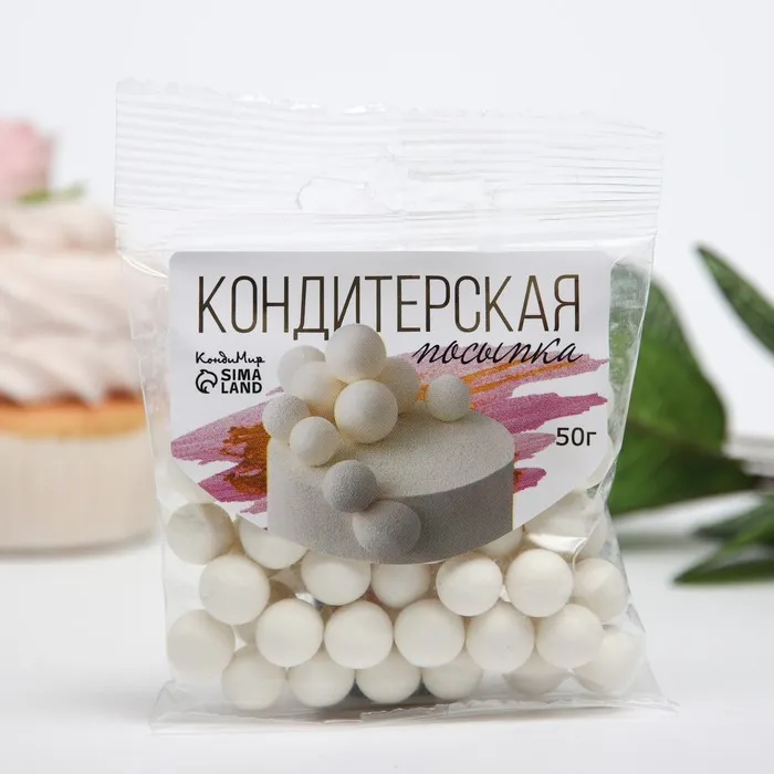 Кондитерская посыпка с мягким центром "Жемчуг" белоснежнаая, 12-13 мм, 50 г — Характеристики