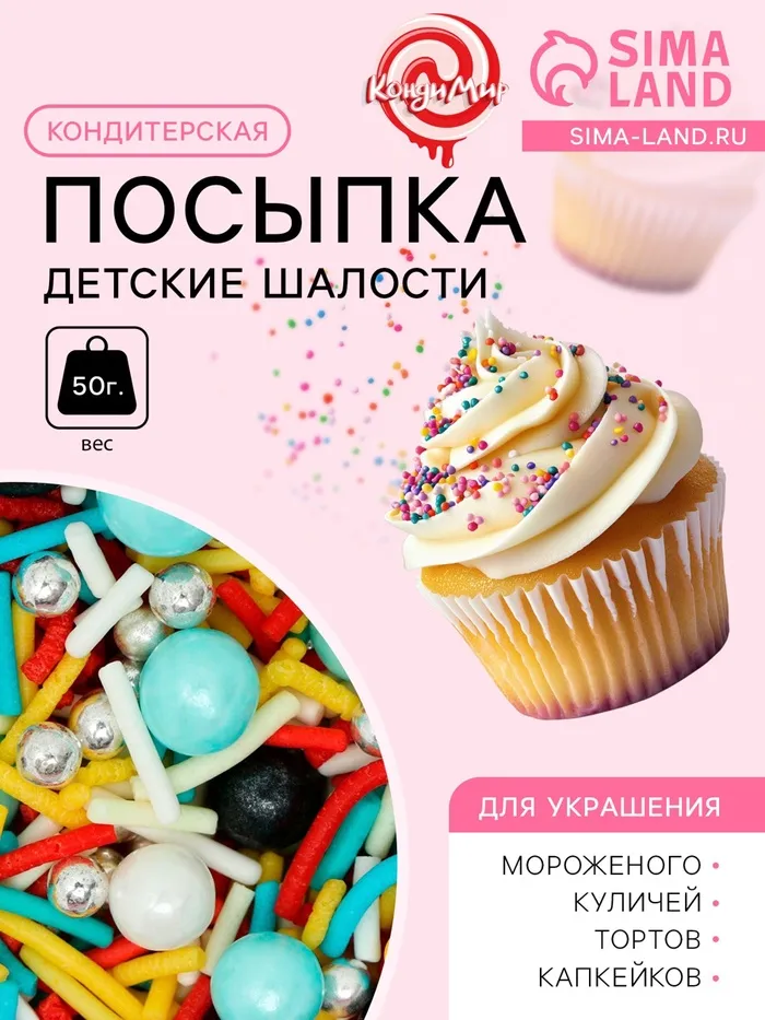 Декоративные кондитерские посыпки Вы можете нанести на поверхность готовых изделий (тортов, пирожных, кексов, рулетов, мороженого, шоколадной глазури, сахарной помадки, сдобы и т.д.) для придания им красивого внешнего вида. Посыпка является отличным вариантом оформления свадебного торта или торта на день рождения. Декоративная посыпка имеет прекрасный вкус, отличается яркостью цвета и может превратить самое простое изделие в кулинарный шедевр. Она дарит презентабельный вид изделиям и является одной из популярных среди украшений.