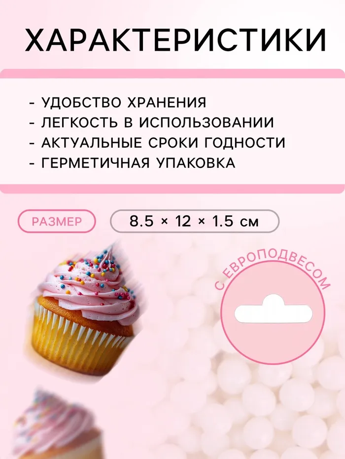 Кондитерская посыпка с мягким центром «Жемчуг»: белоснежная, 2-5 мм, 50 г — Характеристики
