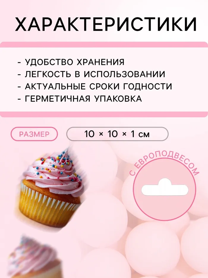 Кондитерская посыпка шарики 7 мм, розовый матовый, 20 г — Характеристики