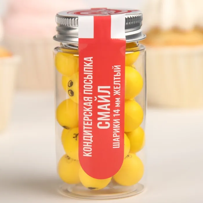 Кондитерская посыпка «Смайл», шарики, 14 мм, жёлтый, 50 г — Характеристики