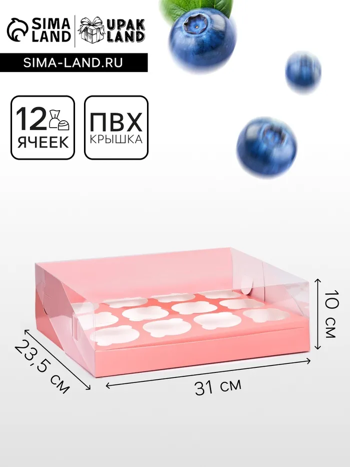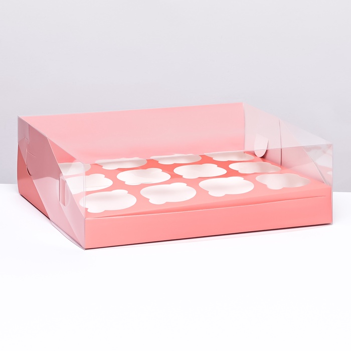 Кондитерская складная коробка для 12 капкейков 31×23.5×10 см, розовая — Характеристики