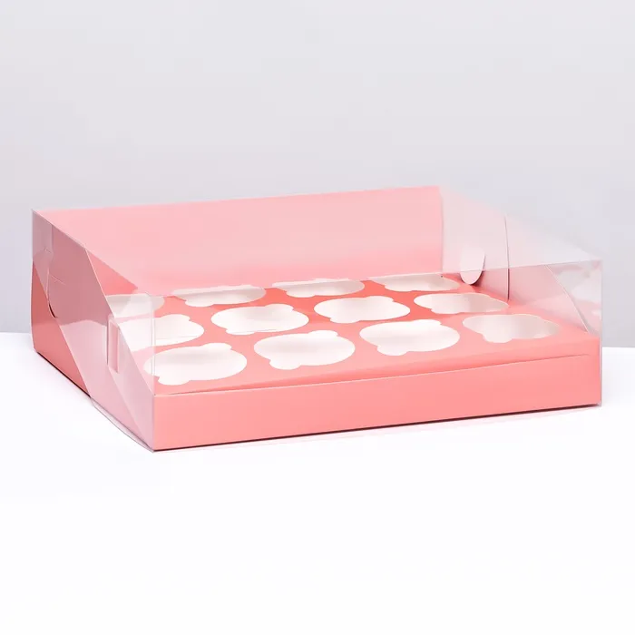 Подарите вашему выпечке собственный стиль! Складная коробка для капкейков на 12 шт., розового цвета – идеальное решение для упаковки и транспортировки ваших кулинарных шедевров. Эта прочная и стильная упаковка придаст вашим десертам особое очарование и подчеркнет их оригинальность.