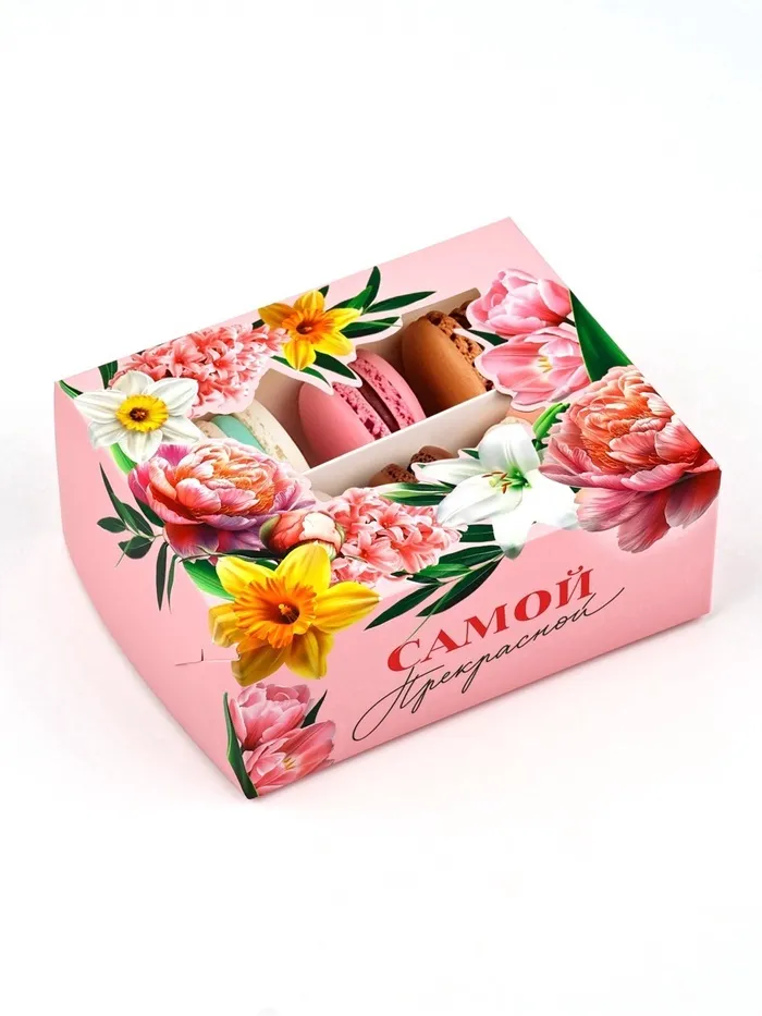 Кондитерская упаковка для макарун с окном, «Самой прекрасной», 11 х 13.5 х 5.5 см — Характеристики
