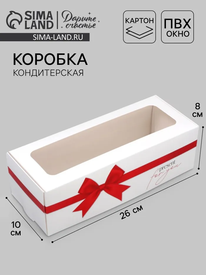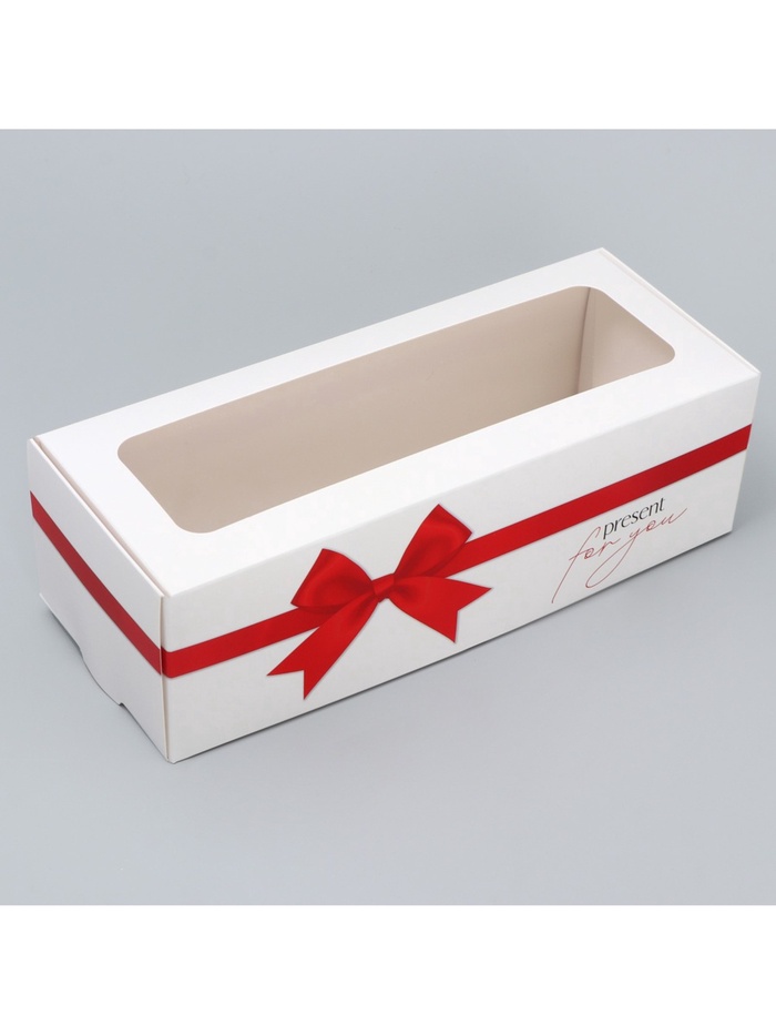 Кондитерская упаковка, коробка для кекса с окном, «Бант», 26 х 10 х 8 см — Характеристики