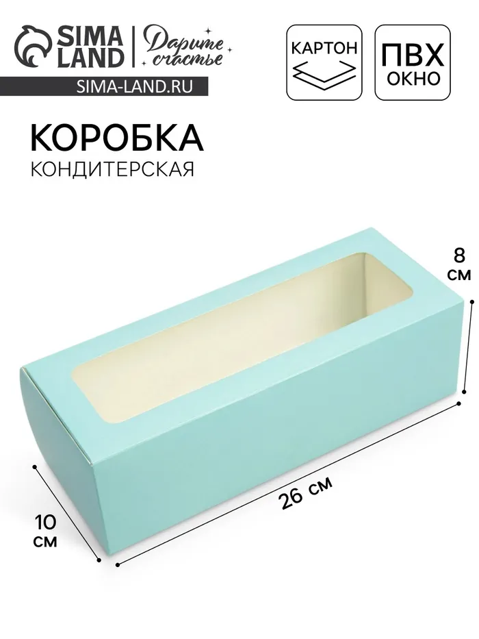 Кондитерская упаковка, коробка для кекса с окном, «Тиффани», 26 х 10 х 8 см — Характеристики