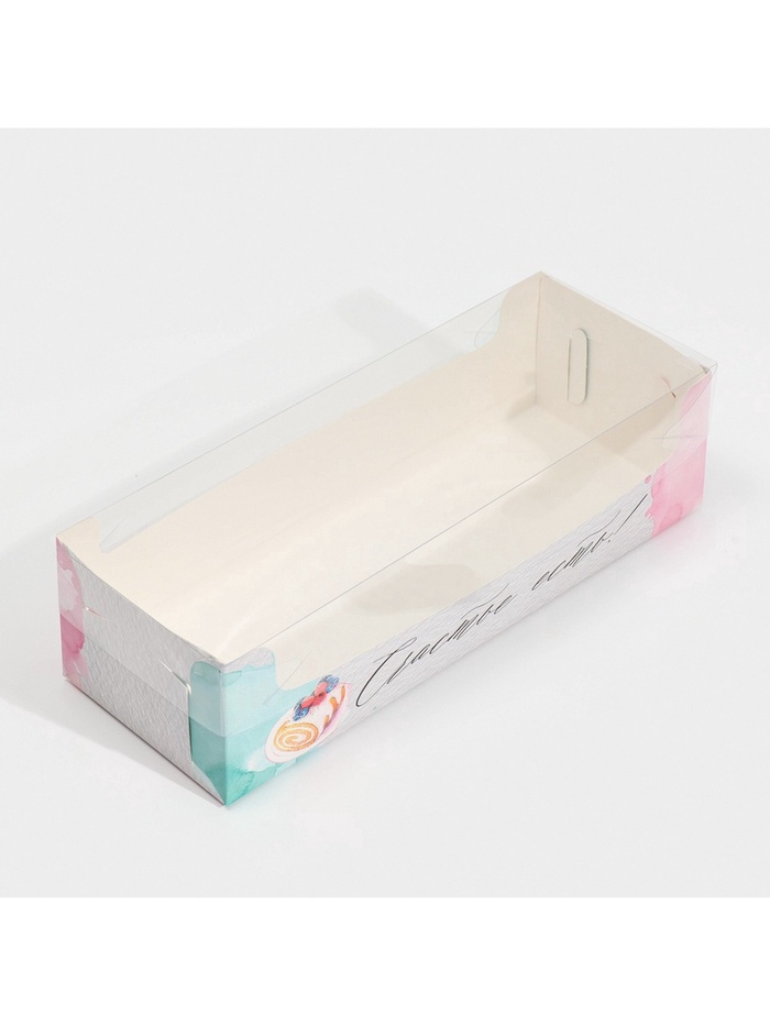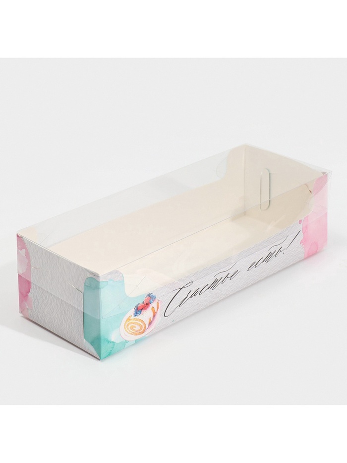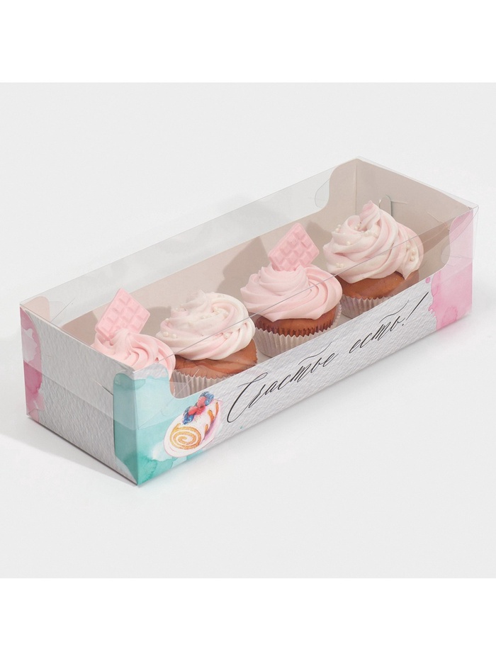 Кондитерская упаковка, коробка для кекса с пластиковой крышкой, «Счастье есть!», 30 х 8 х 11 см — Характеристики