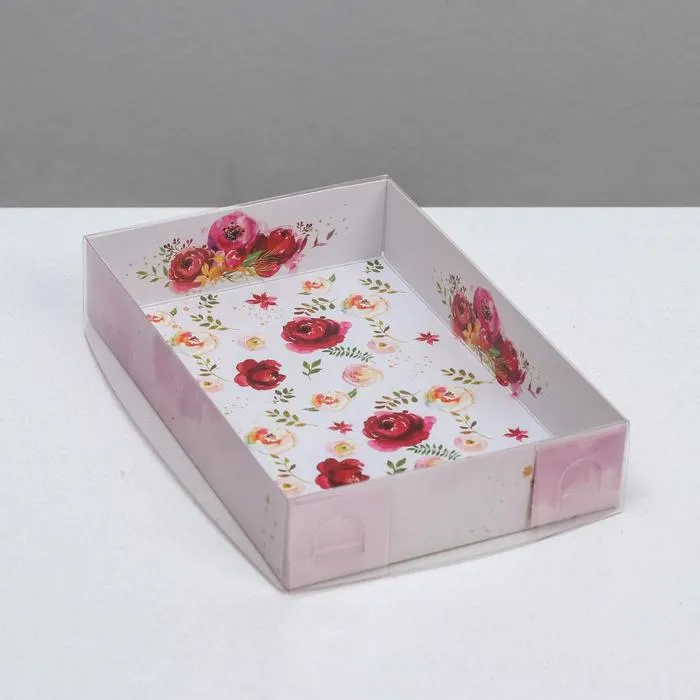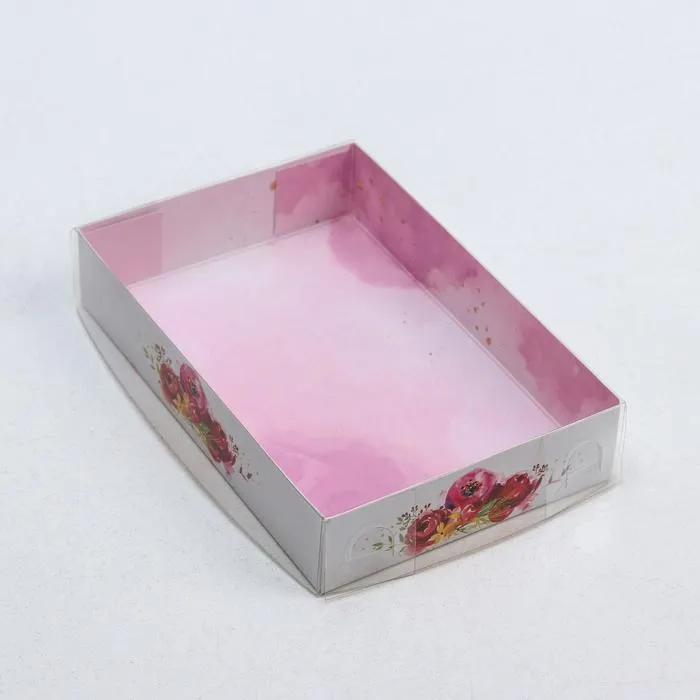 Кондитерская упаковка, коробка для макарун с пластиковой крышкой, «Цветы», 18 х 12 х 3.5 см — Характеристики