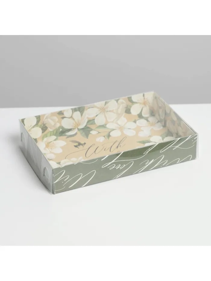 Кондитерская упаковка, коробка для макарун с PVC крышкой, With love, 18 х 12 х 3.5 см — Характеристики