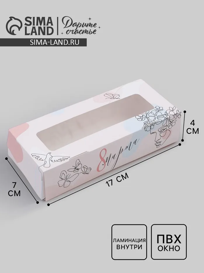 Кондитерская упаковка, коробка с ламинацией «8 марта», 17 х 7 х 4 см — Характеристики