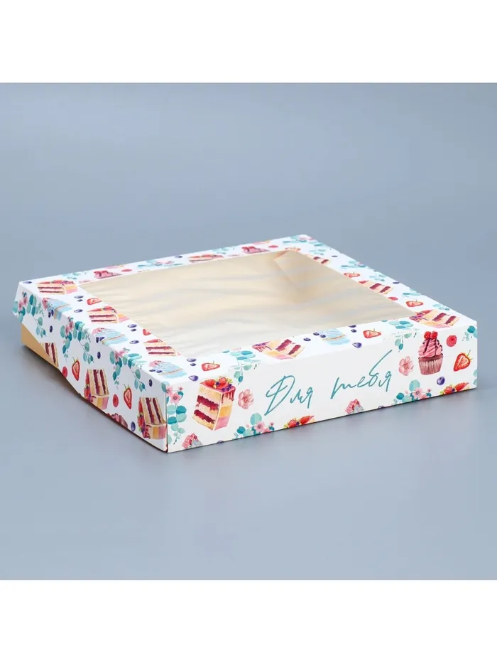 Кондитерская упаковка, коробка с ламинацией «Для тебя», 20 х 20 х 4 см — Характеристики
