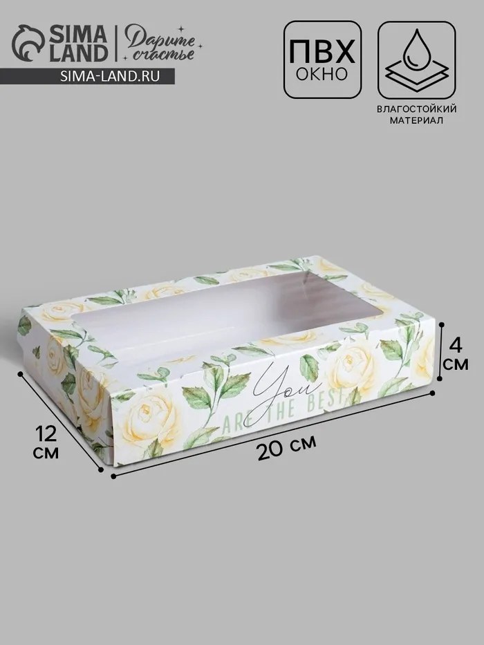 Кондитерская упаковка, коробка с ламинацией «Flowers», 20 х 12 х 4 см — Характеристики