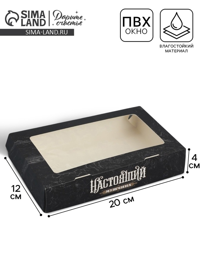 Кондитерская упаковка, коробка с ламинацией «Настоящий мужчина», 20 х 12 х 4 см — Характеристики