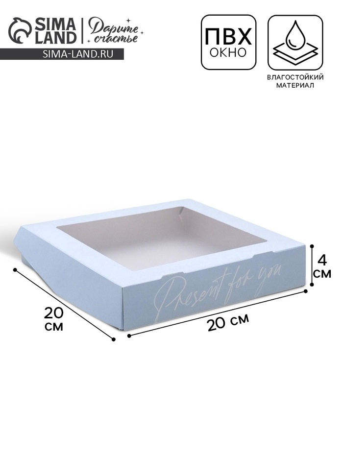 Кондитерская упаковка, коробка с ламинацией «Present», 20 х 20 х 4 см — Характеристики