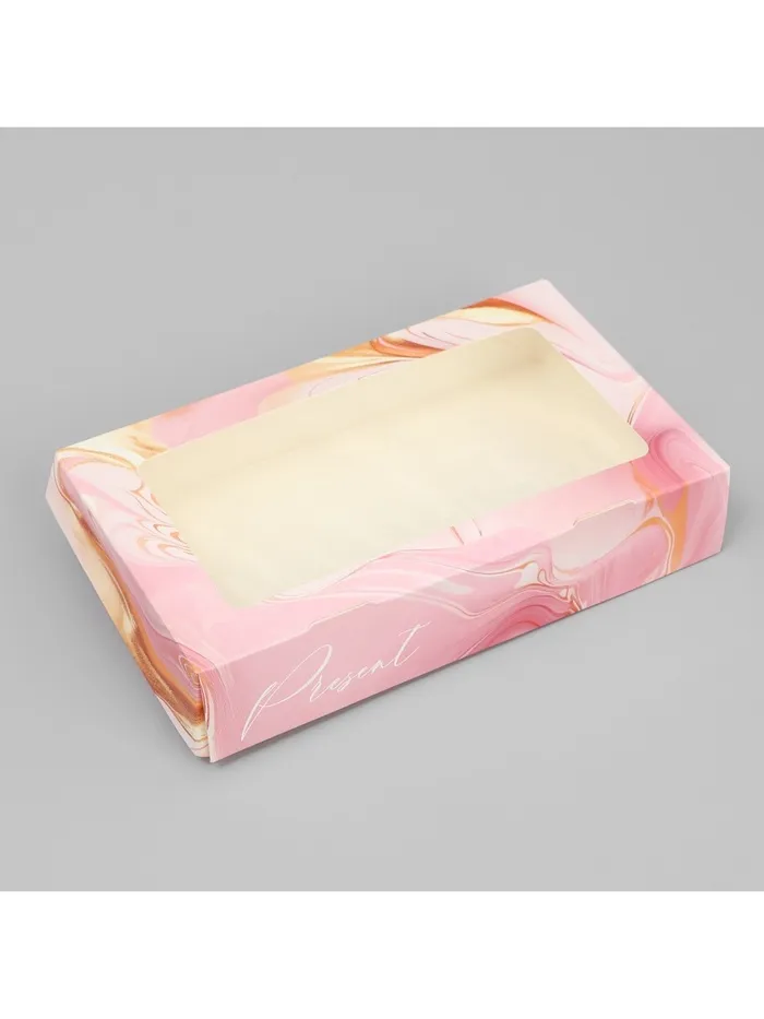 Кондитерская упаковка, коробка с ламинацией «Розовый мрамор», 20 х 12 х 4 см — Характеристики