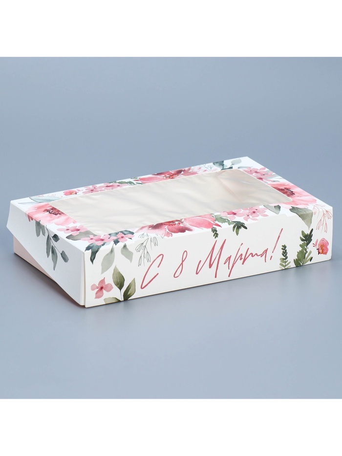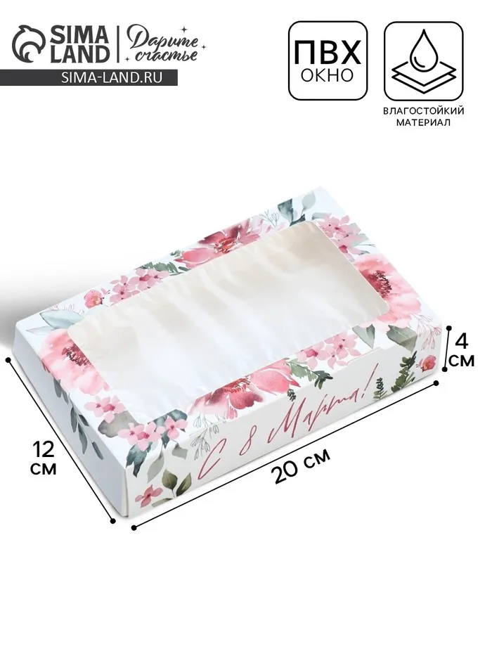 Кондитерская упаковка, коробка с ламинацией «С 8 марта», 20 х 12 х 4 см — Характеристики