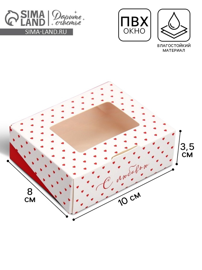 Кондитерская упаковка, коробка с ламинацией «С любовью», 10 х 8 х 3.5 см — Характеристики
