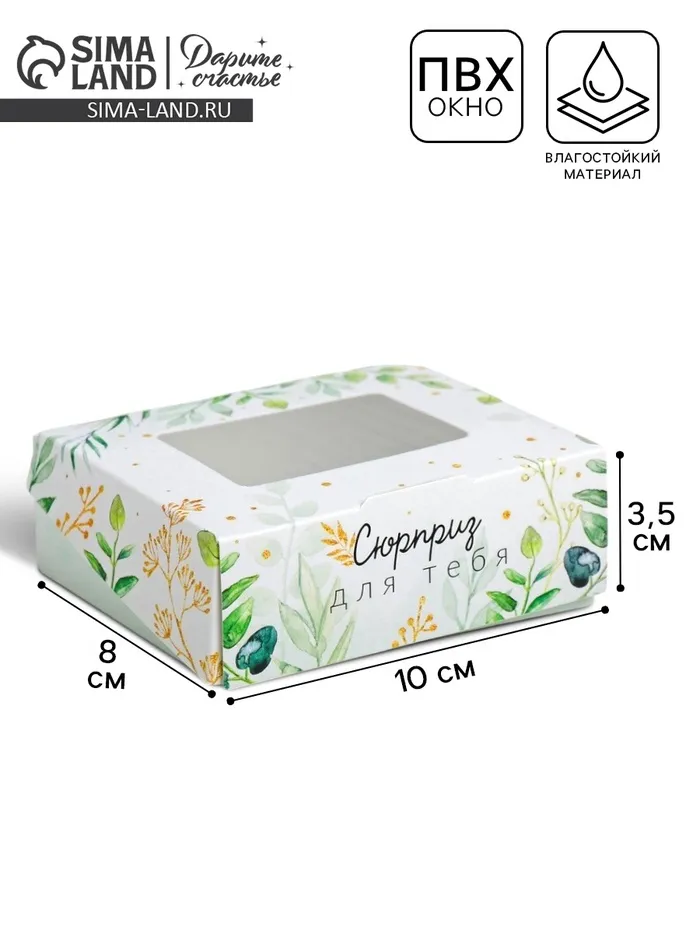 Кондитерская упаковка, коробка с ламинацией «Сюрприз для тебя», 10 х 8 х 3.5 см — Характеристики