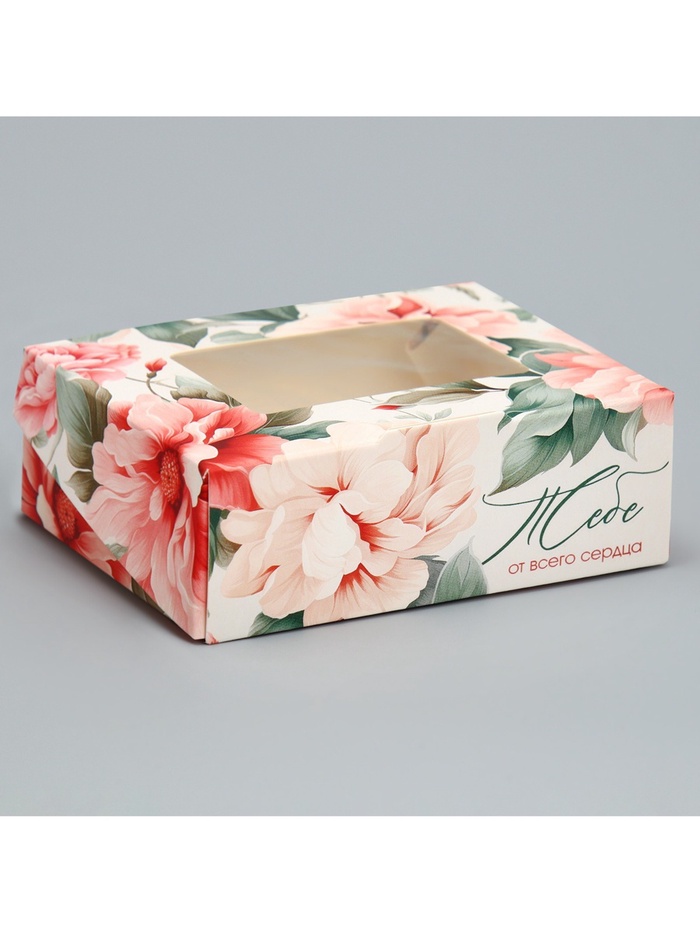 Кондитерская упаковка, коробка с ламинацией «Цветочный», 10 х 8 х 3.5 см