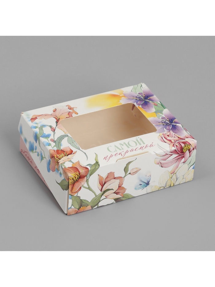 Кондитерская упаковка, коробка с ламинацией «Цветы», 10 х 8 х 3.5 см — Характеристики