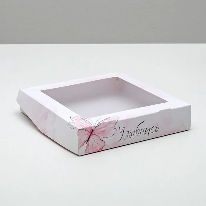 Кондитерская упаковка, коробка с ламинацией «Улыбнись», 20 х 20 х 4 см — Характеристики