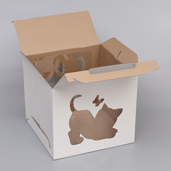 Кондитерская упаковка «Котенок», 2 окна, белая, 35×35×31 см — Характеристики
