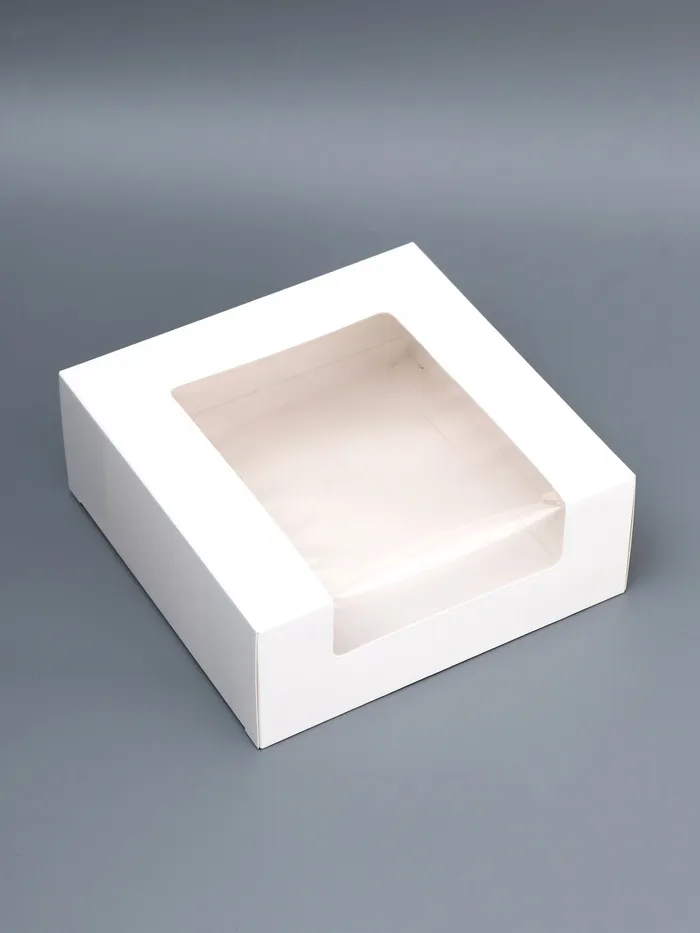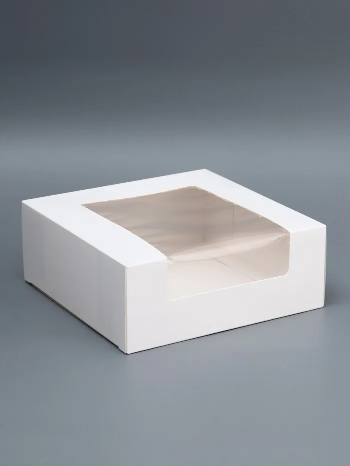 Кондитерская упаковка с окном, белая, 18×18×7 см — Характеристики