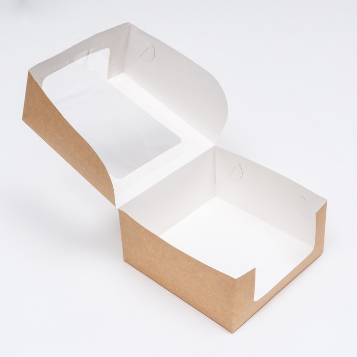 Кондитерская упаковка с окном, крафт, 21×21×10 см — Характеристики
