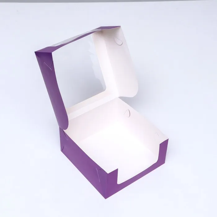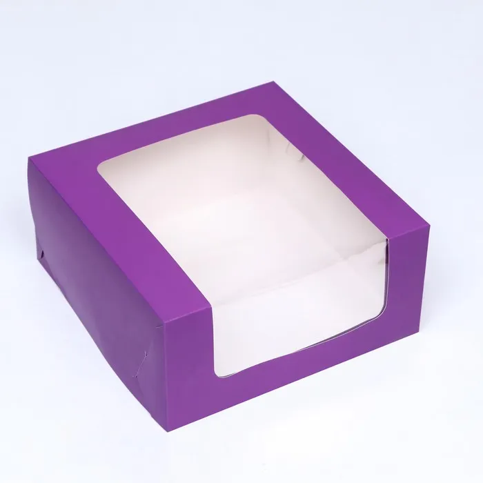 Кондитерская упаковка с окном, сиреневая, 21×21×10 см — Характеристики