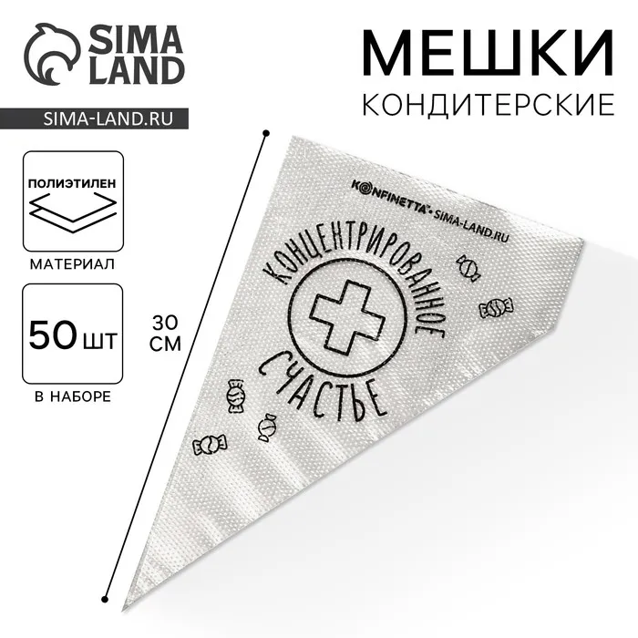 Набор включает в себя 50 треугольных мешков. Прозрачные мешки имеют минимальный дизайн, что позволяет вам видеть содержимое и контролировать процесс декорирования.