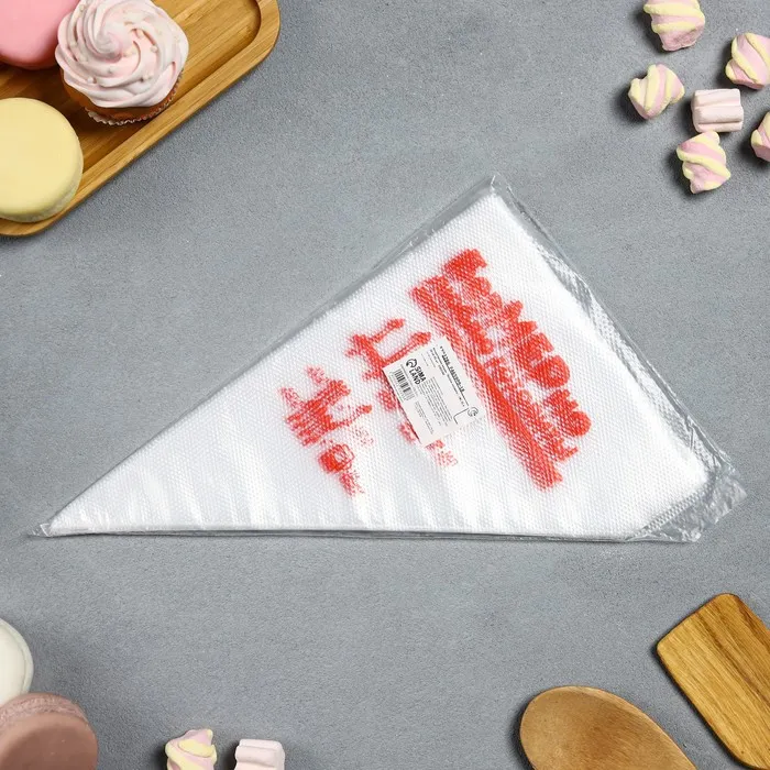 Набор включает в себя 50 треугольных мешков. Прозрачные мешки имеют минимальный дизайн, что позволяет вам видеть содержимое и контролировать процесс декорирования.