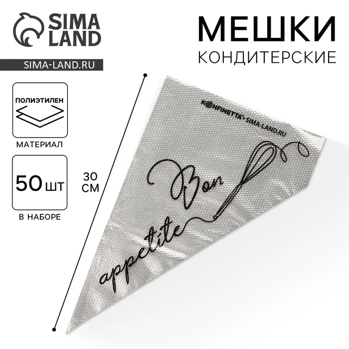 Набор включает в себя 50 треугольных мешков. Прозрачные мешки имеют минимальный дизайн, что позволяет вам видеть содержимое и контролировать процесс декорирования.