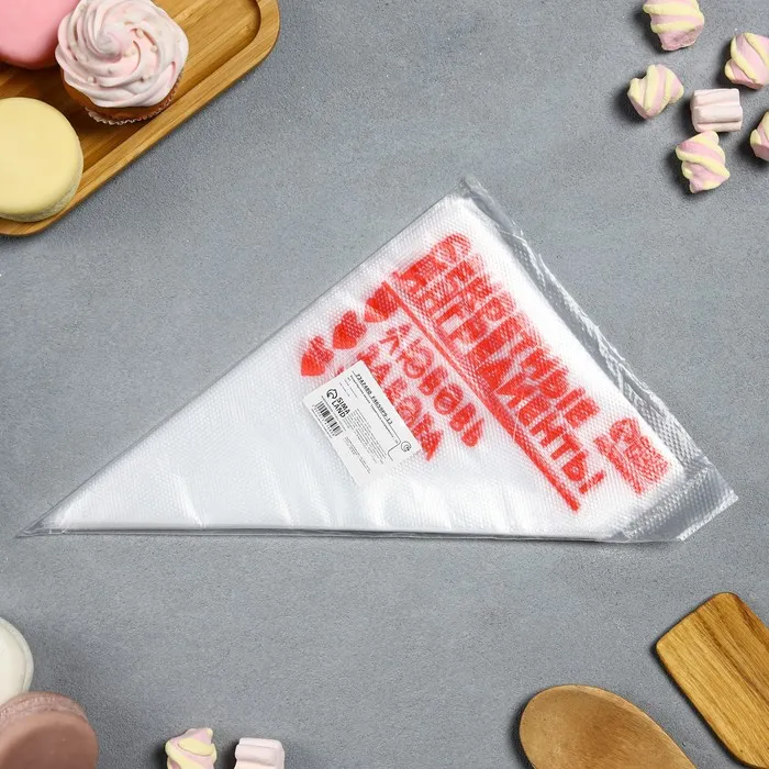 Набор включает в себя 50 треугольных мешков. Прозрачные мешки имеют минимальный дизайн, что позволяет вам видеть содержимое и контролировать процесс декорирования.