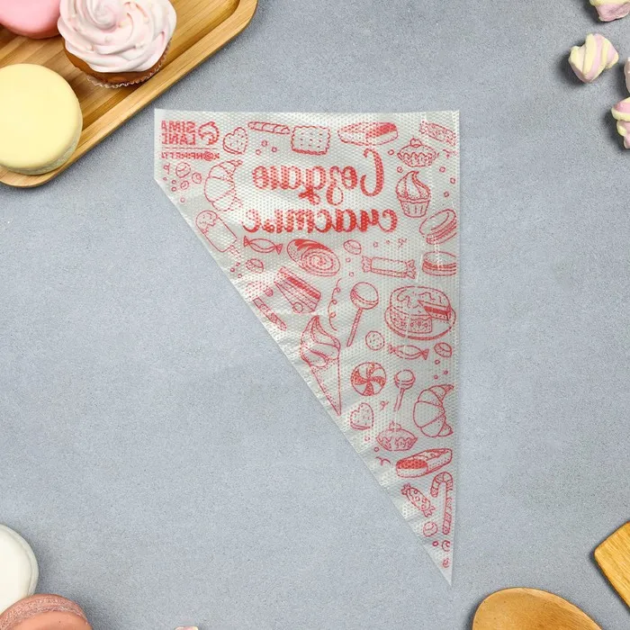 Набор включает в себя 50 треугольных мешков. Прозрачные мешки имеют минимальный дизайн, что позволяет вам видеть содержимое и контролировать процесс декорирования.