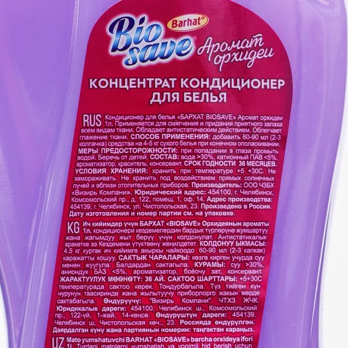 Способ применения: добавить 60-90 мл (2-3 колпачка) средства на 4-5 кг сухого белья при конечном ополаскивании.