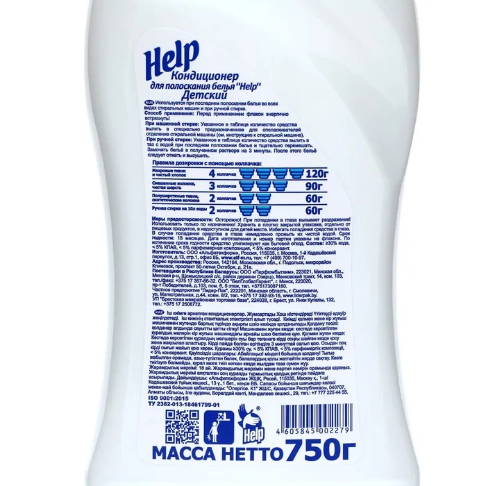 Кондиционер для белья Help "Детский", 750 мл — Характеристики