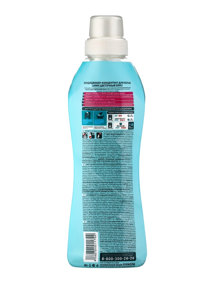Кондиционер для белья LAMM Цветочный бриз, концентрат, эффект антистатика, 910 мл — Характеристики